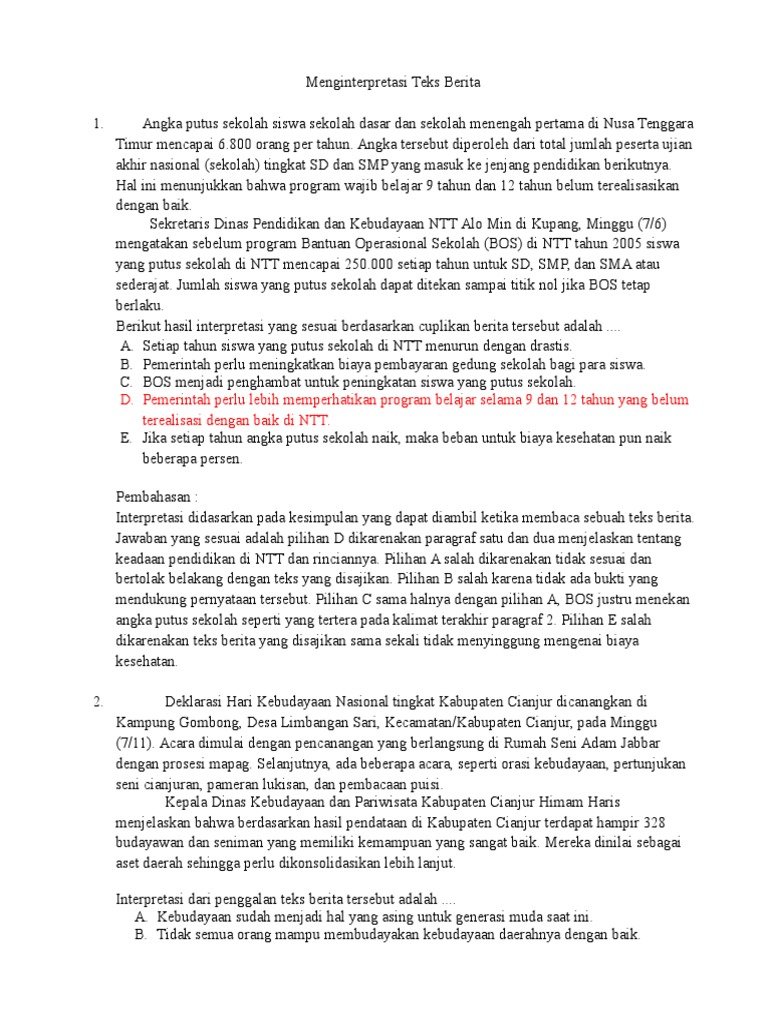 Interprestasi Adalah / Kalimat Interpretasi Pada Teks Tersebut Di Tunjukkan Nomor A 7 B 6 C 2 D 1 Tolong Di Bantu Brainly Co Id - Dengan demikian, apabila jumlah soal yang benar ada 25, maka skor untuk siswa tersebut adalah juga 25, terlepas dari berapa jumlah soal yang membentuk tes itu.